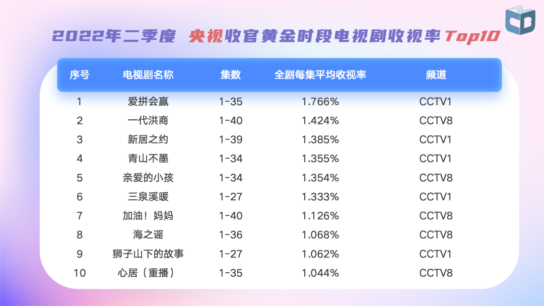 【视听大数据】中国视听大数据发布2022年第2季度收视情况,