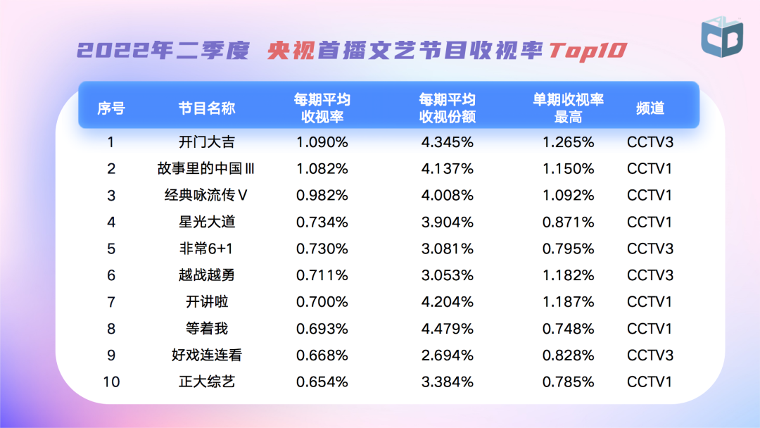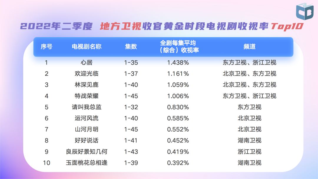 【视听大数据】中国视听大数据发布2022年第2季度收视情况